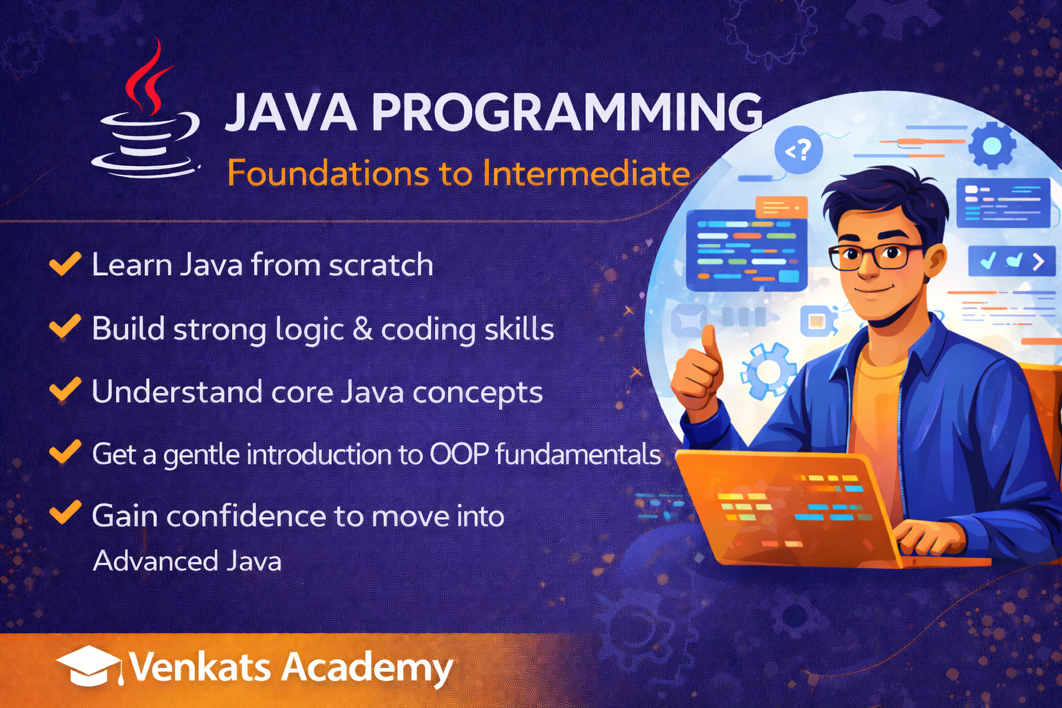 ava Programming: Foundations to Intermediate is a carefully designed course for first-time programming learners and B.Tech students who want to build a strong and confident start in Java programming.